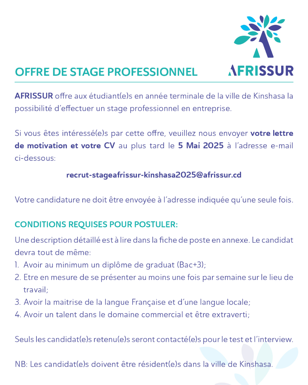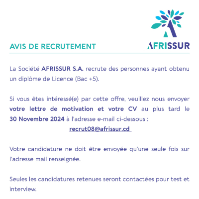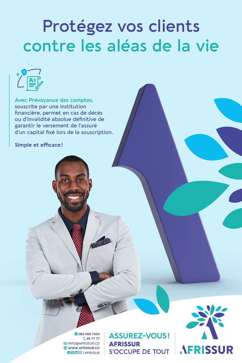 AFRISSUR S.A. est une compagnie d’assurance, créée le 28 mars 2019, et agréée par l’Autorité de Régulation et de Contrôle des Assurances (ARCA) le 20 juin 2020, pour effectuer des opérations d’assurance de la branche Vie.