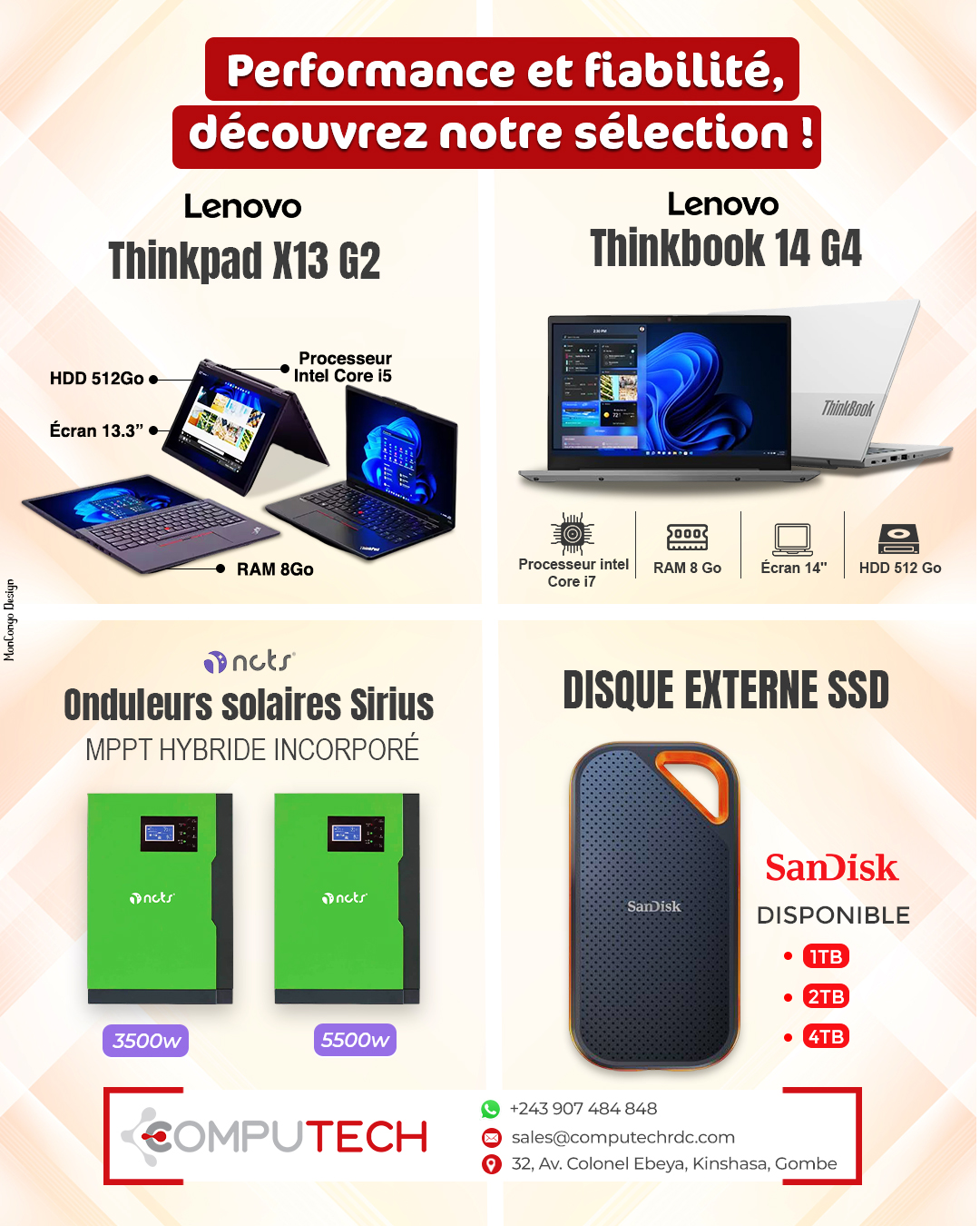 Nous sommes importateurs grossiste et distributeur de grandes marques de matériels informatiques depuis l’an 2010 à Kinshasa, Capital de la République Démocratique du Congo, avec une équipe jeune, dynamique et expérimentée. Tous nos produits sont exclusivement d’origines.