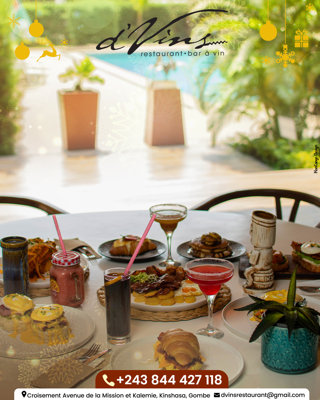 L’équipe souriante du Restaurant D’Vins Lounge, vous accueille dans son Bar Restaurant, idéalement face à la piscine.