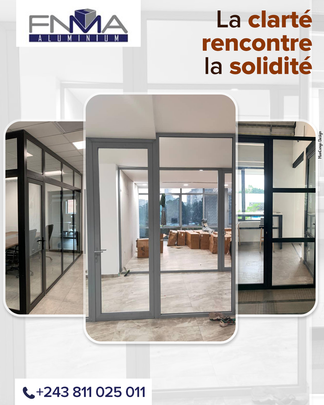 La société FNMA ALUMINUIM est implantée en RD CONGO et spécialisée dans le domaine de la menuiserie métallique. Notre objectif primaire est de fournir des matériaux et un travail de qualité à l'ensemble de nos clients. Située dans le quartier industriel de Limete, nous fabriquons et assemblons nos produits sur le site pour une meilleure finition lors de la pose sur chantier.