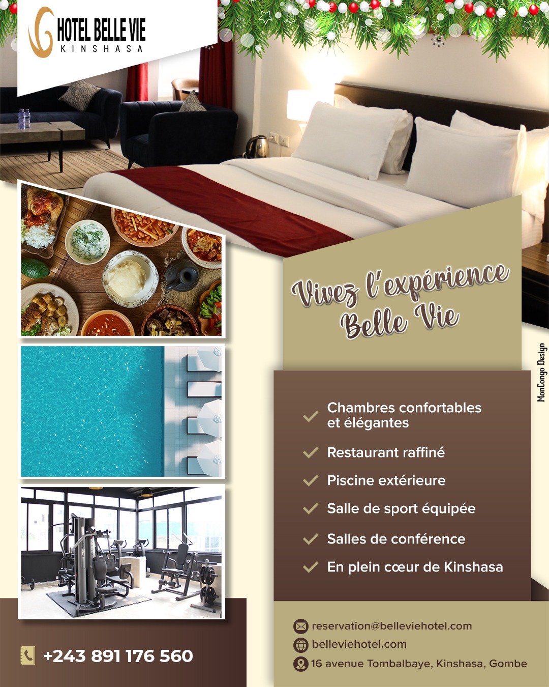 Situé au cœur de Kinshasa, l’Hôtel Belle Vie offre un mélange unique d’élégance, de confort et d’hospitalité chaleureuse. L’établissement dispose de 143 chambres modernes réparties dans trois bâtiments, d’un restaurant raffiné, d’une piscine, d’une salle de conférence et d’un centre de remise en forme. Nous accueillons principalement des ONG, des voyageurs d'affaires et des clients corporatifs, en offrant un excellent rapport qualité-prix et un service personnalisé pour rendre chaque séjour inoubliable.
