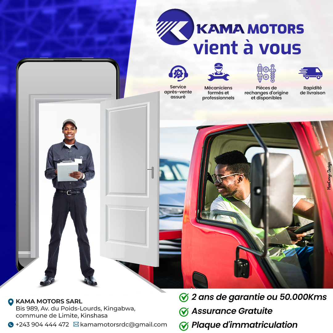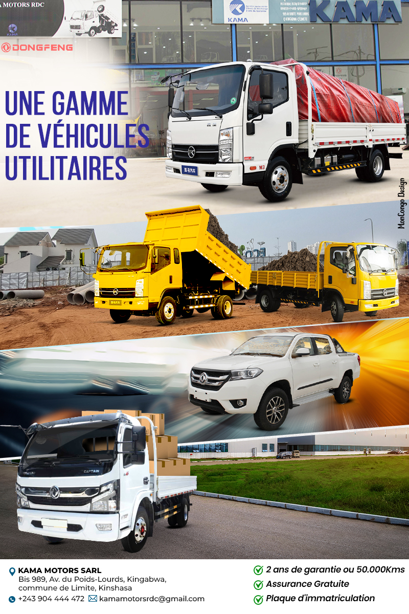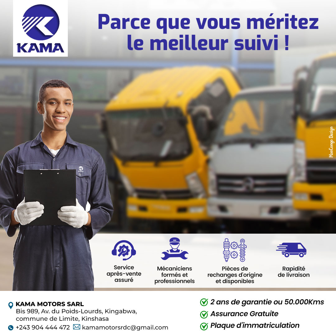 Kama Motors Kinshasa nous propose une large gamme de camions utilitaires et poids lourds adaptés aux besoins des entreprises opérant dans le transport de marchandises, la construction, livraison et les services industriels.