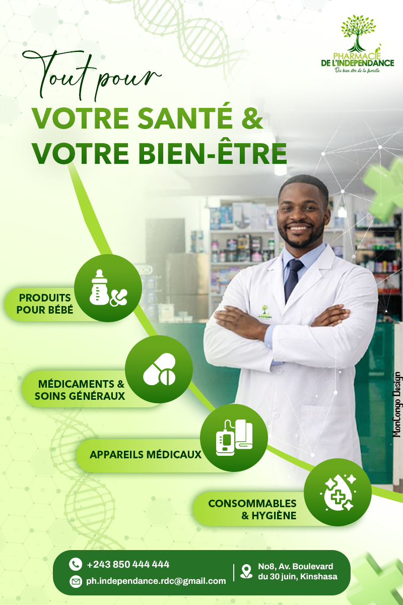 Située sur le Boulevard du 30 Juin, au cœur de la ville, la Pharmacie de l’Indépendance.
