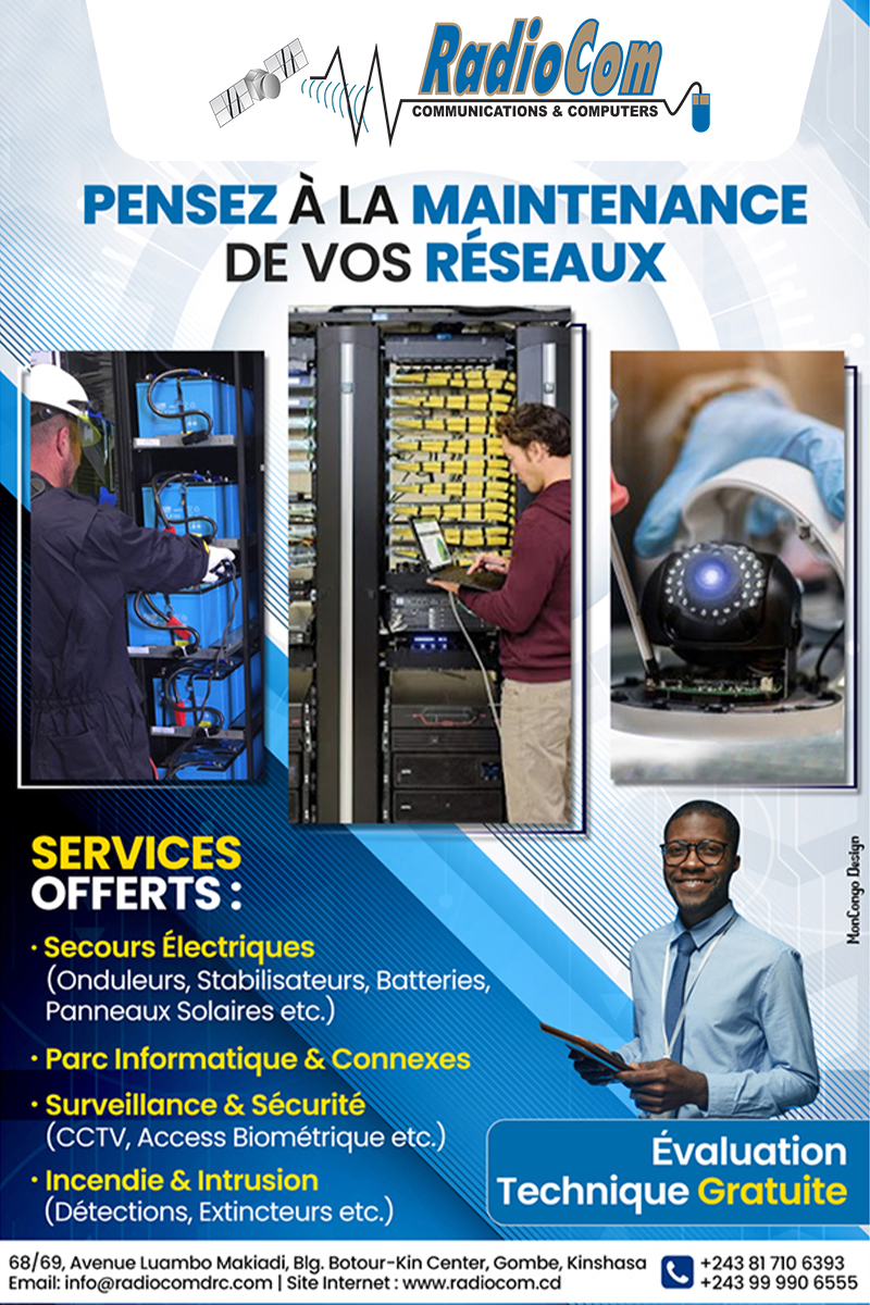 Produits authentiques, prix compétitifs et satisfaction de la clientèle » tels sont les principes de Radiocom sarl société faisant partie de Cyad Holding, société leader dans les domaines du Commerce, de l’industrie et des Services présente en Ouganda, Angola et en RDC. Avec plus de 18 ans d'expérience en Fournitures de Matériels Informatiques, Bureautiques et Produits de Communication aux Entreprises, ONG, Missions des Nations Unies et Gouvernement. Radiocom sarl est devenu la Compagnie la plus sûre de par son renom dans ce domaine.