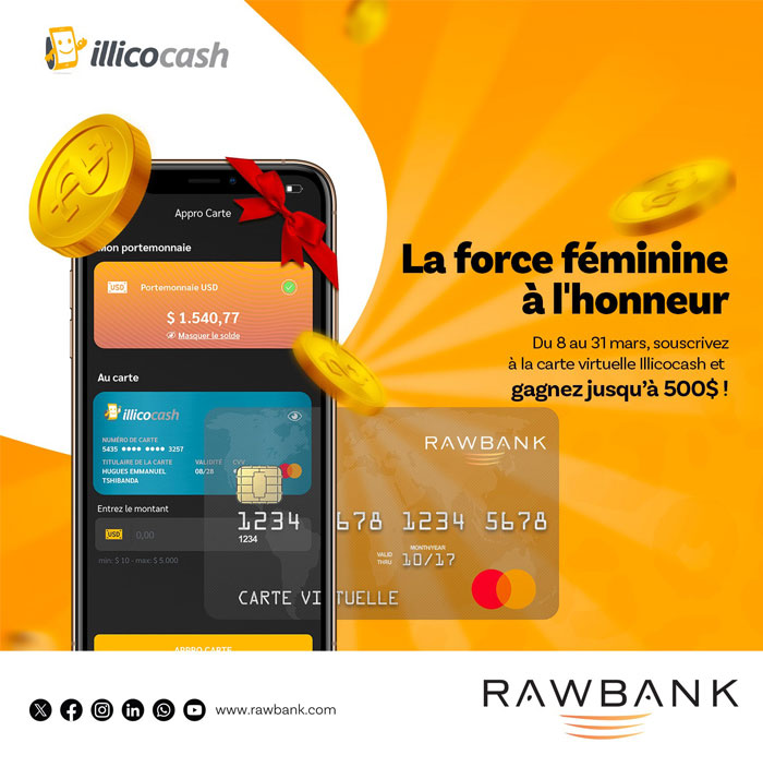 RAWBANK a été la première banque à offrir les produits MasterCard en RDC. Elle a également obtenu la licence Visa International et propose un service performant d’Internet Banking. Elle a également signé des accords de partenariat avec la IFC (International Finance Corporation), la BEI (Banque Européenne d’Investissement), l’AFD (l’Agence Française de Développement) et FPM (Fond pour l’inclusion financière en RD Congo) pour promouvoir le secteur PME en RDC.