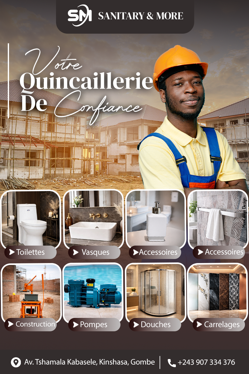 Sanitary and More est une quincaillerie moderne basée à Kinshasa, dédiée à fournir des solutions complètes pour les professionnels du bâtiment, les entreprises et les particuliers passionnés de bricolage.